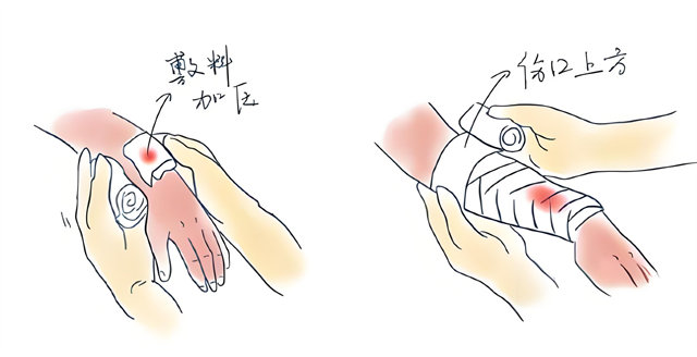 (1)按壓止血,將消毒過的棉布墊在傷口上,按壓10分鐘左右。