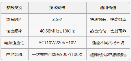 野戰(zhàn)醫(yī)院的救護環(huán)境,每一分每一秒都關(guān)乎生命。密封醫(yī)療包裝的精準手熱合機是關(guān)鍵設(shè)備。精準、高效、穩(wěn)定的性能戰(zhàn)傷救治生命保障線。熱合機的工作原理是它是利用高頻電場原理塑料熔接,巧妙的溫度控制設(shè)計,增加了機體溫度自動監(jiān)控和反饋調(diào)節(jié)機制;通過內(nèi)循環(huán)進風散熱工業(yè)設(shè)計及相關(guān)散熱裝置,可連續(xù)熱合>400次,保證熱合機高頻率使用時溫度的可控性,提高工作效率,保障熱合效果,延長設(shè)備使用壽命。使塑料內(nèi)部分子發(fā)生極化并高速運動產(chǎn)生熱量,從而達到熔接效果。設(shè)備工作時,PVC材料達到熔融狀態(tài),同時在熱合電極的壓力下完成密封,避免液體滲漏和細菌污染。