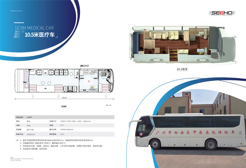 我司生產(chǎn)的職業(yè)病體檢車均選用一線品牌車(宇通、金龍、金旅); 車長有6米、7米、8.2米、9米、10.5米、11米、12米可選。