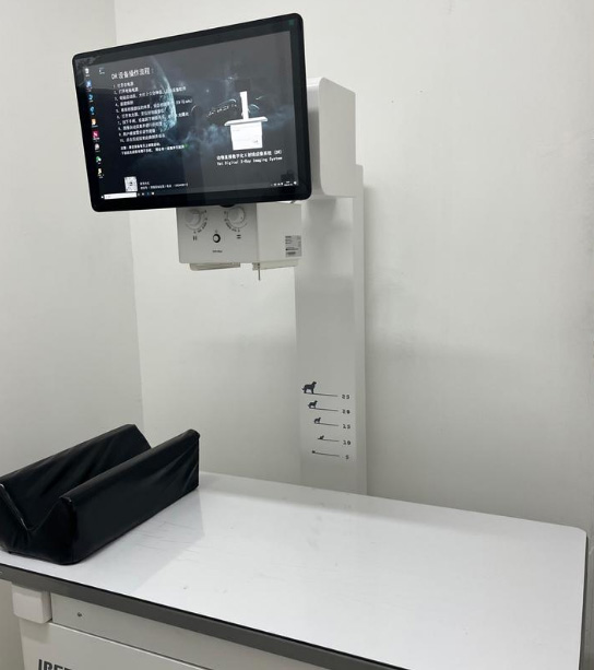 這就是寵物專用的寵物DR影像系統(tǒng),檢查設(shè)備非常重要。快速判斷病情DR系統(tǒng)由于它成像快的優(yōu)點(diǎn),現(xiàn)在已經(jīng)在寵物醫(yī)院廣泛的使用的儀器設(shè)備。都是比較有實(shí)力的寵物醫(yī)院??梢栽趧?dòng)物動(dòng)態(tài)情況下進(jìn)行DR攝片檢查。DR的作用在臨床中拍片子,可以看有沒(méi)骨折、有沒(méi)有膀胱石,有幾個(gè)胎兒等等,DR的手術(shù)床可以活動(dòng)的方便我們中間去選位置,可以跟這個(gè)大小調(diào)整位置。鉛衣是做拍攝防護(hù)的,選擇拍攝部位,腿部、胸部、前肢等。不同部位的值也是不一樣的。千伏毫秒都不一樣。