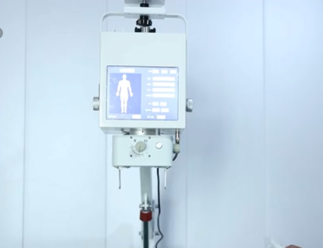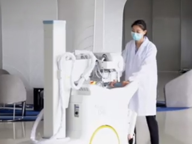 這是一臺便攜式移動DR,它的操作使用方法是怎樣的呢?即使在最狹窄的空間內(nèi)也易于操作和定位。首先打開開關(guān)把移動支架調(diào)整到合適的高度。機頭調(diào)整到合適的拍攝高度,按下開關(guān)打開視野燈,調(diào)節(jié)照射燈的大小。調(diào)整束光器的視野范圍,選擇合適的部位調(diào)整KV、MA等曝光參數(shù)。數(shù)字工作站查看圖像,曝光方式一:兩檔有線手閘曝光,曝光方法二:無線遙控曝光。這兩種曝光方式選其中一個就可以了。電腦上顯示圖像,調(diào)整圖像到滿意的狀態(tài)就可以了。高千伏攝影圖像圖層層次更加豐富,X射線穿透力更強適用多體型患者拍攝。跟固定DR的拍攝效果差不多,臨床圖像清晰。極速快充電,即插即用型。